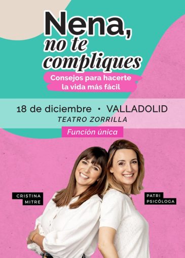 En Nena, no te compliques, una versión en directo de El Podcast de Cristina Mitre. La periodista Cristina Mitre entrevista a la psicóloga Patricia Ramírez (Patri Psicóloga) para ayudarnos a crear ese libro de instrucciones que nos haga la vida mucho más fácil.